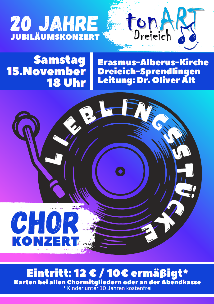 Am 15.11.2025, um 18:00 Uhr findet in der Erasmus-Alberus-Kirche in Dreieich-Spendlingen unser Chorkonzert unter dem Titel